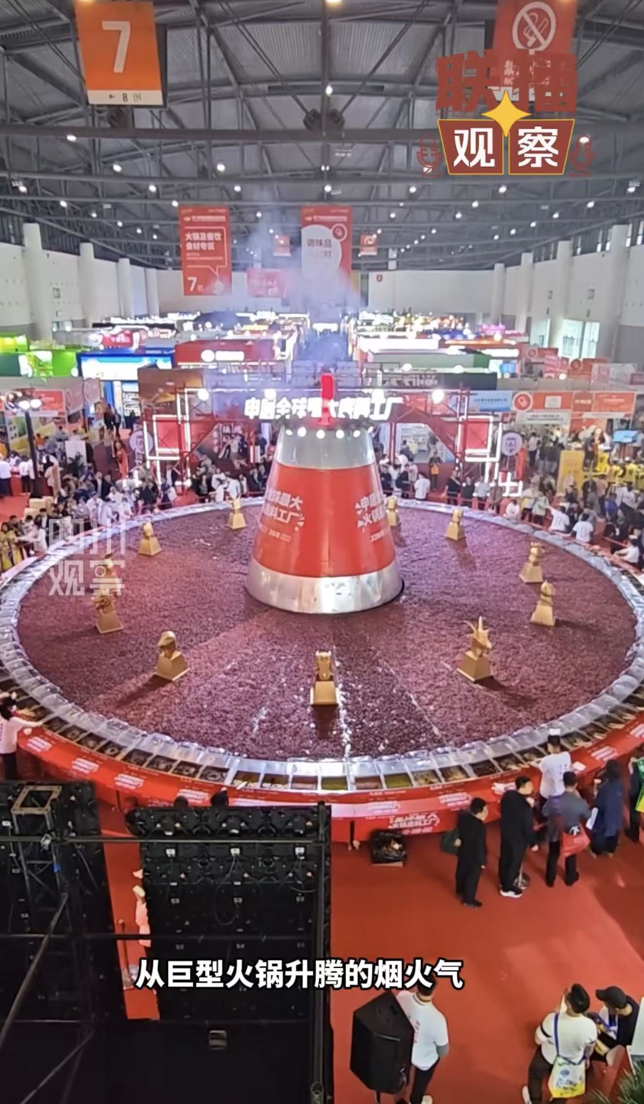 本年,糖酒会展览总面积达32.5万平方米,设置了12大展区和26个特征品类专区。要想把这场好吃又好玩的展会逛理解,光靠一双腿可不行,还需要会品味美食的胃。瞧,眼前这座高16.7米的巨型火锅,非常吸睛,它能包容大约200人一起就餐,麻辣锅、西红柿锅、菌汤锅……多种口味“一锅”齐全。我们围着热锅吃,端着串串聊,让本来传统的招商场景变得鲜活又接地气。热气氤氲间,不只拉近了品牌与客商的间隔,更把成都的热心与烟火气,传递给了天南海北的观众。